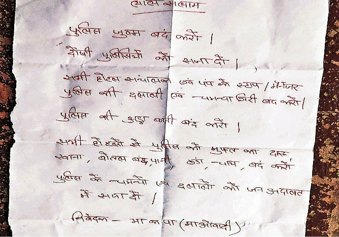 होटल व पेट्रोल पंप संचालकों को नक्सलियों ने भेजा पत्र