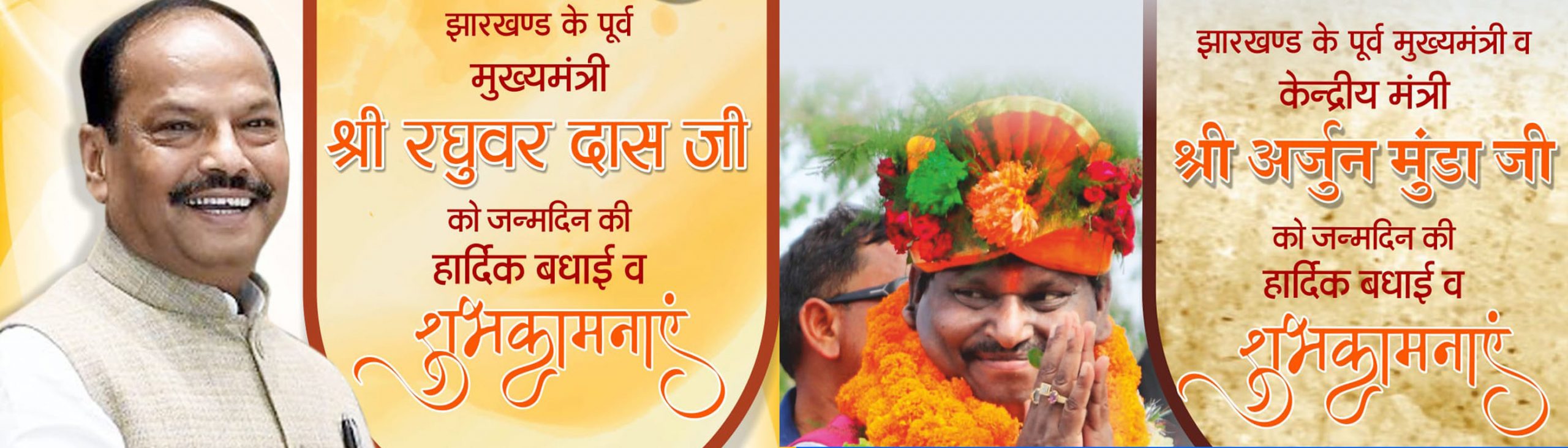 रांची : झारखंड के दो पूर्व मुख्यमंत्रियों का रविवार (3 मई, 2020) को जन्मदिन है. भारतीय जनता पार्टी (भाजपा) के इन दोनों मुख्यमंत्रियों को पार्टी ने जन्मदिन की शुभकामनाएं दी हैं. पार्टी के आधिकारिक ट्विटर हैंडल से ट्वीट करके अर्जुन मुंडा और रघुवर दास को जन्मदिन पर बधाई दी है. रघुवर दास को जमशेदपुर पश्चिम के विधायक एवं प्रदेश के स्वास्थ्य मंत्री बन्ना गुप्ता ने भी जन्मदिन की शुभकामनाएं दी हैं.