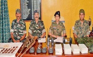 ये हथियार मिले : 315 राइफल दो पीस मैगजीन के साथ, वायरलेस सेट व चार्जर 47 पीस, जिलेटिन स्टिक 28 पीस, नन इलेक्तिट्रकल डेटोनेटर 47 पीस, पेंसिल चार्जर पांच पीस, कंट्री मेड हैंड ग्रेनेड एक पीस, सेफ्टी पिन एक पीस, प्लास्टिक पाउच 200 पीस, नक्सली साहित्य 88 पीस, उच्च क्षमता वाला 36 नंबर हैंडग्रेनेड दो पीस, स्क्रू ड्राइवर एक पीस, स्टील ट्रंक एक पीस, 27 नंबर नन इलेक्तिट्रकल डेटोनेटर 6 पीस, कोर्ड टैक्स वायर 2 मीटर, स्टिकर 86 पीस, स्टीकर स्प्रिंग 5 पीस, डेटोनेटर सॉकेट 3 पीस, ऑयल किट 2 पीस, ग्रीन यूनिफार्म वन पीस स्टील ट्रंक वन पीस,