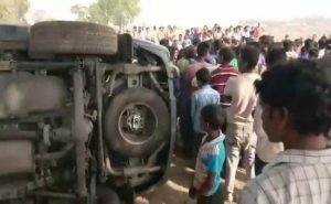 बोकारो : कथित बच्चा चोर की पिटाई, पुलिस वैन को पलटा