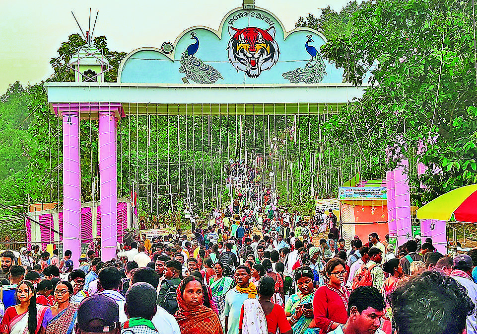 महुआटांड़, विश्व भर के संताली आदिवासियों की संस्कृति व परंपरा के उद्गम स्थल लुगुबुरु घांटाबाड़ी धोरोमगाढ़ में आयोजित तीन दिवसीय 25वें अंतरराष्ट्रीय संताल सरना धर्म महासम्मेलन (राजकीय महोत्सव) के दूसरे दिन मंगलवार को आस्था का सैलाब उमड़ा. सोमवार की रात तक लगभग एक लाख श्रद्धालु लुगुबुरु व दोरबार चट्टानी पुनाय थान में अपने आराध्यों के दर्शन कर मत्था टेक चुके थे. मंगलवार को दो लाख से अधिक श्रद्धालु यहां पहुंचे और सीधे दोरबार चट्टानी के रास्ते लुगुबुरु स्थित सात किमी ऊपर घिरी दोलान पुनाय थान पहुंच कर बोंगा बुरु (पूजा अर्चना) की. मंगलवार की सुबह से दिन भर तक श्रद्धालुओं की करीब दो किमी लंबी लाइन लगी हुई थी. सीता झरना के पास स्थित लुगु बाबा के छटका द्वार (गुफा) के पास पूजा के लिए श्रद्धालुओं का तांता लगा रहा. चोरगांवां के रास्ते भी हजारों श्रद्धालु लुगुबुरु पुनाय थान पहुंच रहे हैं.