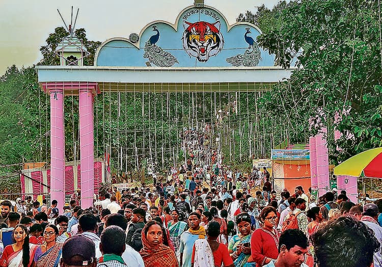 महुआटांड़, विश्व भर के संताली आदिवासियों की संस्कृति व परंपरा के उद्गम स्थल लुगुबुरु घांटाबाड़ी धोरोमगाढ़ में आयोजित तीन दिवसीय 25वें अंतरराष्ट्रीय संताल सरना धर्म महासम्मेलन (राजकीय महोत्सव) के दूसरे दिन मंगलवार को आस्था का सैलाब उमड़ा. सोमवार की रात तक लगभग एक लाख श्रद्धालु लुगुबुरु व दोरबार चट्टानी पुनाय थान में अपने आराध्यों के दर्शन कर मत्था टेक चुके थे. मंगलवार को दो लाख से अधिक श्रद्धालु यहां पहुंचे और सीधे दोरबार चट्टानी के रास्ते लुगुबुरु स्थित सात किमी ऊपर घिरी दोलान पुनाय थान पहुंच कर बोंगा बुरु (पूजा अर्चना) की. मंगलवार की सुबह से दिन भर तक श्रद्धालुओं की करीब दो किमी लंबी लाइन लगी हुई थी. सीता झरना के पास स्थित लुगु बाबा के छटका द्वार (गुफा) के पास पूजा के लिए श्रद्धालुओं का तांता लगा रहा. चोरगांवां के रास्ते भी हजारों श्रद्धालु लुगुबुरु पुनाय थान पहुंच रहे हैं.