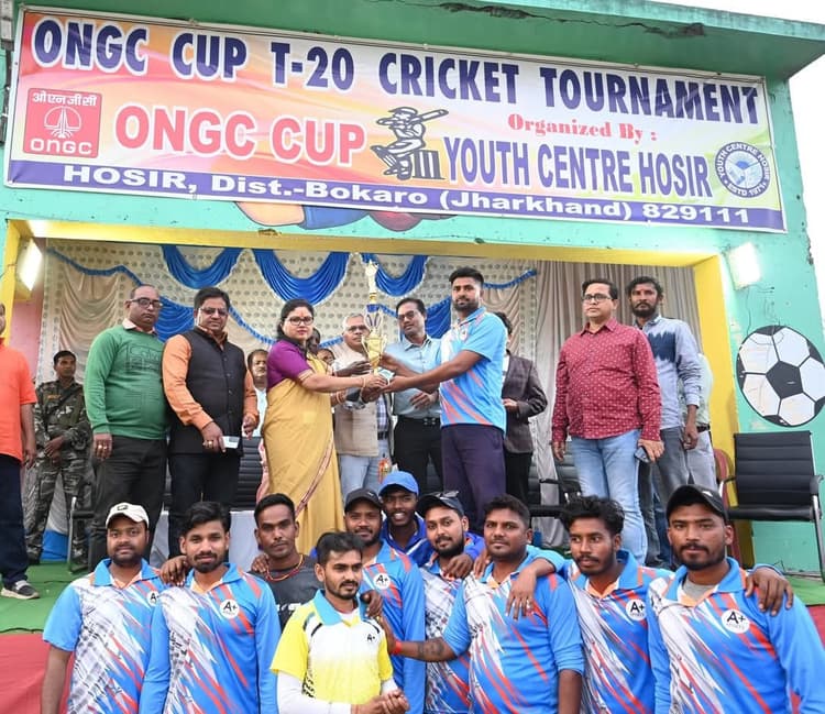 ललपनिया. गोमिया प्रखंड अंतर्गत होसिर में आयोजित ओएनजीसी कप टी-20 क्रिकेट टूर्नामेंट का फाइनल मैच बुधवार को खेला गया. भीमा इलेवन जारंगडीह ने पहले बल्लेबाजी करते हुए 15 ओवरों में 188 रन बनाये. जवाब में हजारी की टीम 150 रन ऑल आउट हो गयी. गोमिया की पूर्व विधायक बबीता देवी ने विजेता व उप विजेता टीमों को ट्रॉफी देकर सम्मानित किया. टूर्नामेंट के आयोजन के लिए यूथ सेंटर होसिर के सभी सदस्यों को बधाई दी. कहा कि खेल जीवन का महत्वपूर्ण हिस्सा है. राज्य सरकार खेल और खिलाड़ियों को बढ़ावा देने के लिए कृतसंकल्पित है. मौके पर ओएनजीसी अधिकारी पीएन भगत, आर सिंह, अजय कुमार दास, पंसस गीता देवी, यूथ सेंटर के अध्यक्ष सनत कुमार प्रसाद, सचिव अमित नंदन, पूर्व अध्यक्ष अजीत कुमार सहाय, भगवान दास, राजेश प्रसाद के अलावा मो मुख्तार, कुंदन कुमार, मितभाषी प्रसाद, विद्यानंद प्रसाद, विक्की कुमार, वीरेंद्र यादव, सूरज कुमार, रंजीत सिंह, शिवम, संतोष सिंह, राहुल राम, राजेश प्रसाद आदि थे. मैच में उद्घोषक अजीत नारायण प्रसाद व प्रवीण कुमार थे. टूर्नामेंट पांच फरवरी से शुरू हुआ था, जिसमें 16 टीमों ने भाग लिया.