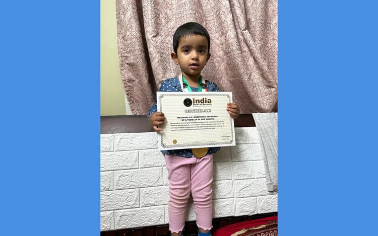 एक मिनट में सबसे अधिक सामान्य ज्ञान के प्रश्नों का उत्तर देने का रिकॉर्ड संडे बाजार की नवीशा सिन्हा ने बनाया है. वह मात्र दो वर्ष दो महीने की है और संस्था गॉड इज वन के संस्थापक स्व. उदय शंकर सिन्हा व संरक्षक नीता सिन्हा की नतिनी है. नवीशा के मामा विवेक कुमार सिन्हा ने बताया कि नवीशा को इंडियन बुक ऑफ रिकाॅर्ड्स द्वारा 30 अक्टूबर को प्रमाण पत्र देकर सम्मानित किया गया है. इंडियन बुक ऑफ रिकाॅर्ड्स भारत सरकार द्वारा पंजीकृत है और एशिया बुक ऑफ रिकॉर्ड से भी मान्यता प्राप्त है. नवीशा के पिता विवेक सिन्हा बेंगलुरु में आइआइटी इंजीनियर हैं और मां पूजा सिन्हा एलएलबी है. नवीशा की इस असाधारण उपलब्धि से परिजनों में खुशी है. कई लोगों ने बधाई दी है और उसके उज्ज्वल भविष्य की कामना की है.