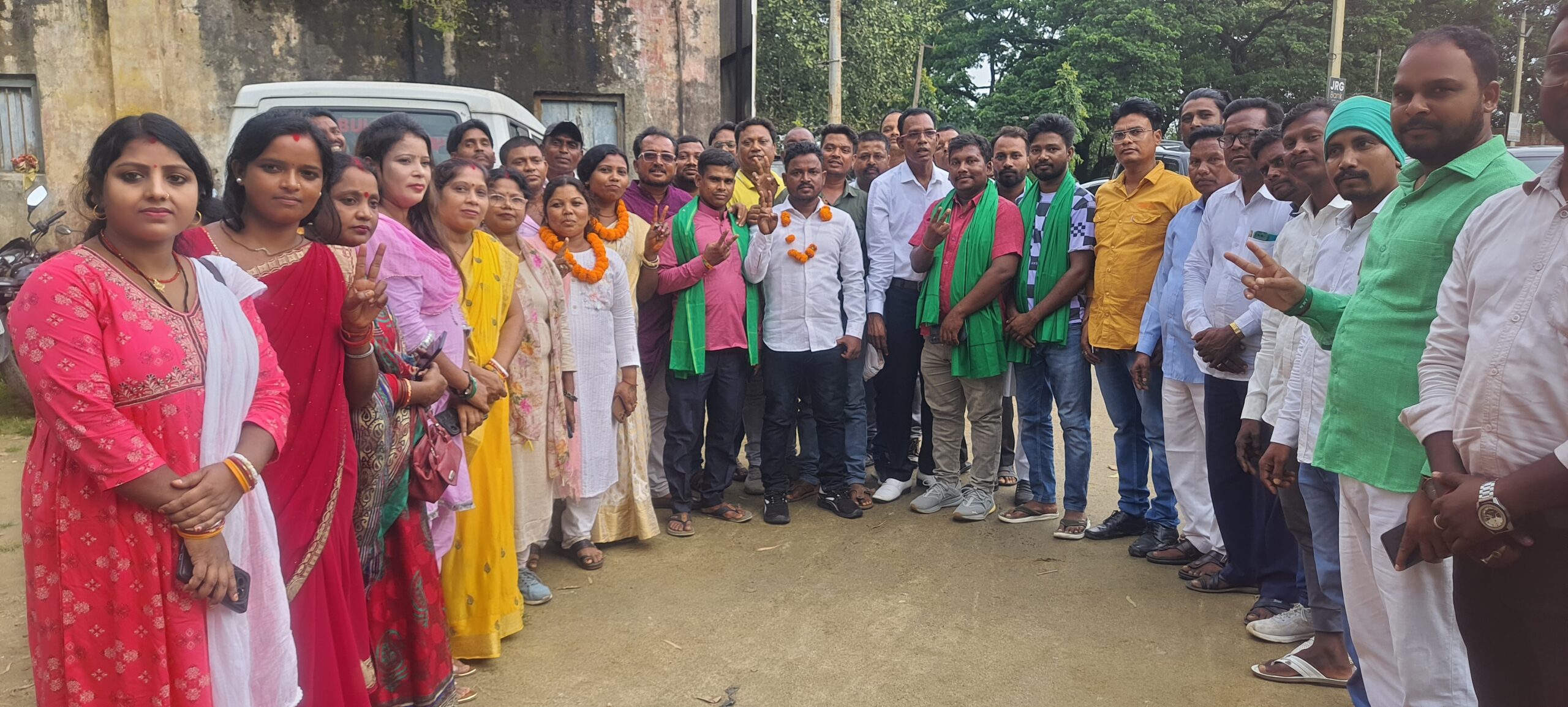 जैनामोड़, जैनामोड़ स्थित बिरसा सामुदायिक भवन में गुरुवार को झामुमो युवा मोर्चा की बैठक जिला अमित सोरेन की अध्यक्षता में हुई. जरीडीह युवा मोर्चा प्रखंड कमेटी के अध्यक्ष, सचिव व कोषाध्यक्ष तीनों पदों का चयन किया गया. सर्वसमिति से अजित कुमार मुर्मू को अध्यक्ष, कुलदीप मरांडी व राजेश मुर्मू को सचिव बनाया गया. वहीं अजरूद्दीन अंसारी, जितेंद्र मरांडी व अजित किस्कू को उपाध्यक्ष बनाया गया. इसी दौरान महिला मोर्चा की जिला अध्यक्ष पूनम देवी ने बबीता कुमारी को जरीडीह महिला मोर्चा का दूसरी बार प्रखंड अध्यक्ष बनाया. जिला अध्यक्ष ने ये सभी संगठन को काफी मजबूती प्रदान करेंगे. वहीं जरीडीह प्रखंड के अध्यक्ष पंकज मरांडी ने कहा कि मुख्यमंत्री हेमंत सोरेन के नेतृत्व में पार्टी में काफी संख्या में युवा जुड़ रहे हैं. मौके पर केंद्रीय सदस्य हीरालाल माझी, घुनु हांसदा, अशोक मुर्मू, मंगल हांसदा, सचिव तापेश्वर महतो, जिला कार्य समिति सदस्य सरजू मिश्रा, अजय किस्कू, सोहन मुर्मू, अजीत मुर्मू, संतोष पांडेय, रवींद्रनाथ हांसदा, रमेश मुंडा, सोहराय हांसदा, बबीता कुमारी, तुलसी मरांडी, अतुल रजवार, राजाराम सोरेन, संजय मुर्मू, लखन मांझी, अमित दीगर, अजहरुद्दीन, बिहारी लाल सोरेन, सचिव बबीता देवी, शाहिदा खातून, देवीलाल मुर्मू, शंकर सोरेन, सुमित रवानी आदि मौजूद थे.