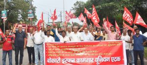 Bokaro News : क्रांति दिवस पर बोकारो इस्पात कामगार यूनियन एटक ने किया प्रदर्शन, नयामोड़ से निकाला जुलूस.