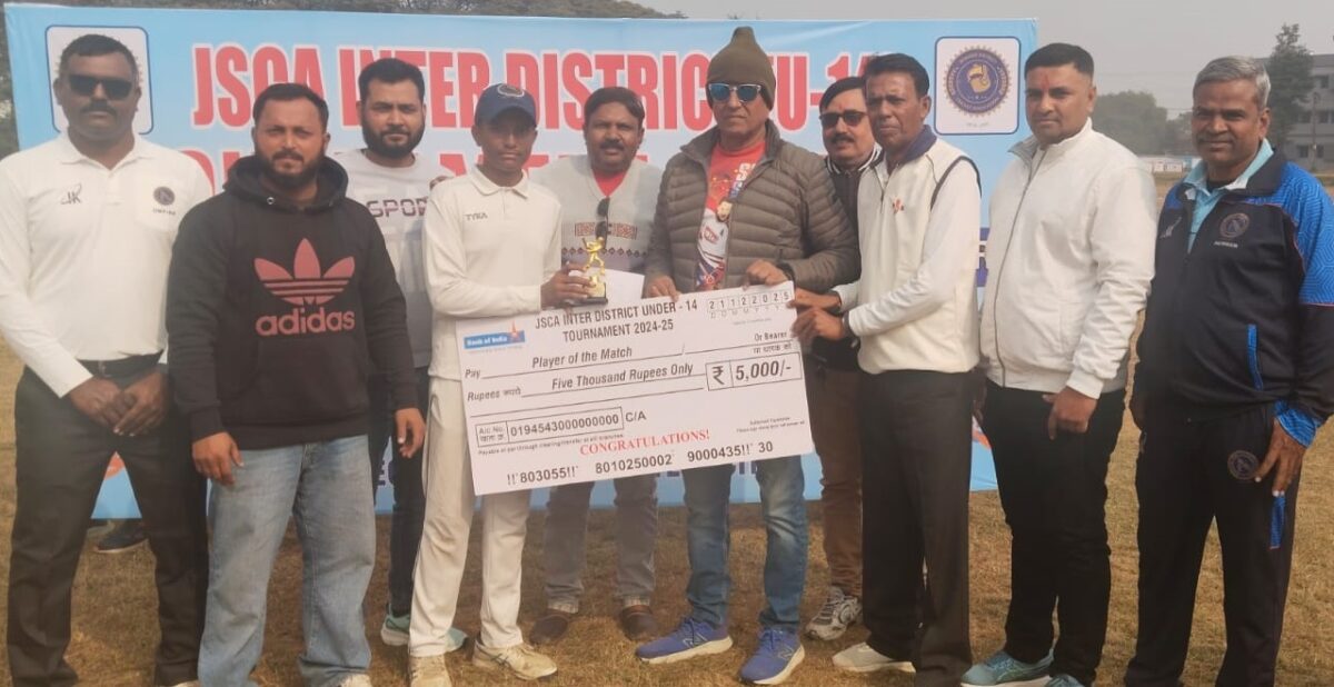 Bokaro News : जेएससीए अंतर जिला अंडर 14 क्रिकेट टूर्नामेंट, बोकारो के अंश कुमार बने प्लेयर ऑफ द मैच.