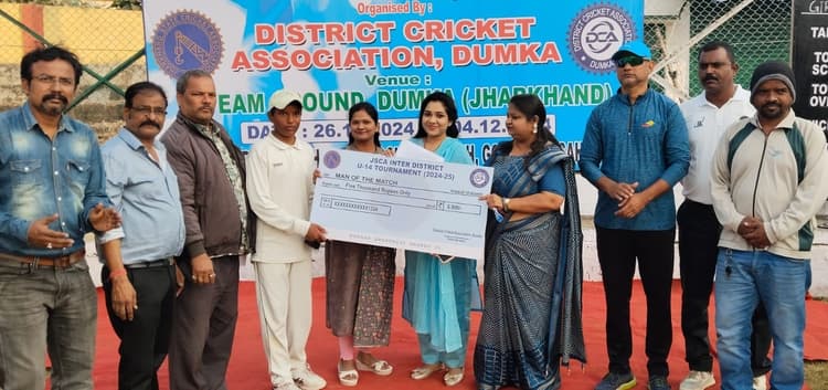 बोकारो, झारखंड राज्य क्रिकेट संघ की ओर से संचालित अंतर जिला क्रिकेट टूर्नामेंट में बुधवार को दुमका में खेले गये मैच में बोकारो की टीम ने अंश कुमार के ऑलराउंड प्रदर्शन व कुलदीप कुमार के अर्धशतक की मदद से गिरिडीह को 112 रनों से पराजित किया. टॉस जीत कर पहले बल्लेबाजी करते हए बोकारो ने 40 ओवर में आठ विकेट खोकर 249 रन बनाये. टीम की ओर से कुलदीप कुमार ने 59, अंश कुमार ने नाबाद 37 हर्षित कुमार ने 34 व आभास शर्मा ने 22 रन बनाये. गिरिडीह की ओर से उत्कर्ष आनंद , सौरभ पंडित व आयुष कुमार को दो-दो सफलता मली. जवाबी पारी खेलते हुए गिरिडीह की टीम 33.2 ओवर में 137 रनों पर सिमट गयी. टीम की ओर से दिव्यांशु यादव ने 54 तेजस्वी ने 18 व शिवम ने 15 रन बनाये. गेंदबाजी में बोकारो की ओर से अंश कुमार ने 22 रन देकर व अनुज कुमार ने 19 रन देकर तीन-तीन विकेट लिए. जबकि प्रियांशु को दो सफलता मिली. मैच में ऑलराउंड प्रदर्शन के लिए बोकारो के अंश कुमार को प्लेयर ऑफ द मैच का पुरस्कार मैच टीआरडीओ आमिर हाशमी ने दिया. वहीं बोकारो में खेले गये एक मैच में धनबाद ने खूंटी को 221 रनों से पराजित कर दूसरी जीत दर्ज की. टॉस जीतकर पहले बल्लेबाजी करते हुए धनबाद ने 40 ओवर में तीन विकेट खोकर 326 रन बनाया. टीम की ओर से गुरप्रीत सिंह ने 87, दिशांक शेखर ने 80, प्रिंस ने 58 व प्रियांशु ने 52 रनों की पारी खेली. खूंटी की ओर से तन्मय , प्रियांशु व वेदांश को एक-एक सफलता मिली. जवाबी पारी खेलने उतरी खूंटी की टीम 31.2 ओवर में 105 रनों पर सिमट गयी. टीम की ओर से निहाल ने 20 व तन्मय ने 15 रन बनाये. गेंदबाजी में धनबाद की ओर से गुरप्रीत सिंह ने 28 रन देकर पांच व राजकुमार ने 23 रन देकर दो विकेट लिए. मैच में ऑल राउंड प्रदर्शन के लिए धनबाद के गुरप्रीत सिंह प्लेयर ऑफ द मैच का पुरस्कार बीडीसीए तदर्थ समिति के सदस्य राजेश रंजन ने दिये.