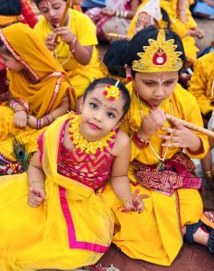नन्हें कान्हा ने मंच पर बांसुरी की मधुर धुन छेड़ी, माखन चोरी की और अपनी नटखट अदाओं से सबको मंत्रमुग्ध कर दिया. राधा ने भक्ति से ओतप्रोत गीत व संवाद प्रस्तुत किये, तो यशोदा मां के स्नेह और गोपियों की चंचल शरारतों ने वातावरण को भक्ति और आनंद से भर दिया. बच्चों द्वारा प्रस्तुत प्रसिद्ध संवाद मैया मोरी, मैं नहीं माखन खायो, भोर भयो, गयन के पाछे मधुबन मोहे पठायो…ने कृष्ण लीला की याद दिला दी.