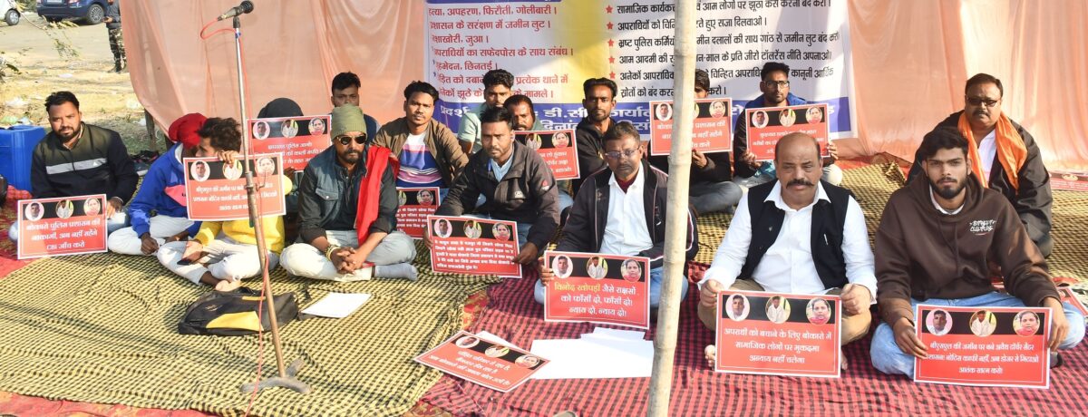 बोकारो, किसान संग्राम समिति के बैनर तले शनिवार को डीसी कार्यालय के समीप जयंत सिंह हत्याकांड की जांच को लेकर धरना दिया गया. धरना पर बैठे लोगों ने कहा कि बोकारो में लगातार अपराध बढ़ रहा है. सेक्टर आठ निवासी जयंत हत्या की हत्या प्रत्यक्ष प्रमाण है. जयंत के हत्यारोपितों को कड़ी से कड़ी सजा मिलनी चाहिए. प्रशासन व थानों द्वारा जमीन लूट व फर्जी विकास को संरक्षण प्रदान करना बिल्कुल बंद होना चाहिए. पुलिस अपराध के खिलाफ आवाज उठाने वालों पर फर्जी मुकदमे कर रही है. अपराधियों को संरक्षण दे रही है. धरना के बाद जयंत सिंह हत्याकांड की जांच को लेकर एक प्रतिनिधिमंडल ने डीसी अजय नाथ झा से कैंप दो कार्यालय में मुलाकात की. मुख्यमंत्री के नाम एक ज्ञापन सौंपा. मांग की कि हत्याकांड की जांच सीबीआइ से करायी जाये. हत्याकांड में शामिल आरोपियों की संपत्ति जब्त करते हुए मृत्युदंड दिलाया जाये. जिले में बढ़ रहे अपराध को लेकर प्रशासन सख्त कदम उठाये. 16 दिसंबर को शांतिपूर्ण धरना-प्रदर्शन के दौरान न्याय मांगने वाले निर्दोष नागरिकों पर बीएस सिटी थाना में मुकदमा दर्ज किया गया. यह दमनकारी व लोकतंत्र विरोधी है. मौके पर समिति से जुड़े लोग मौजूद थे.