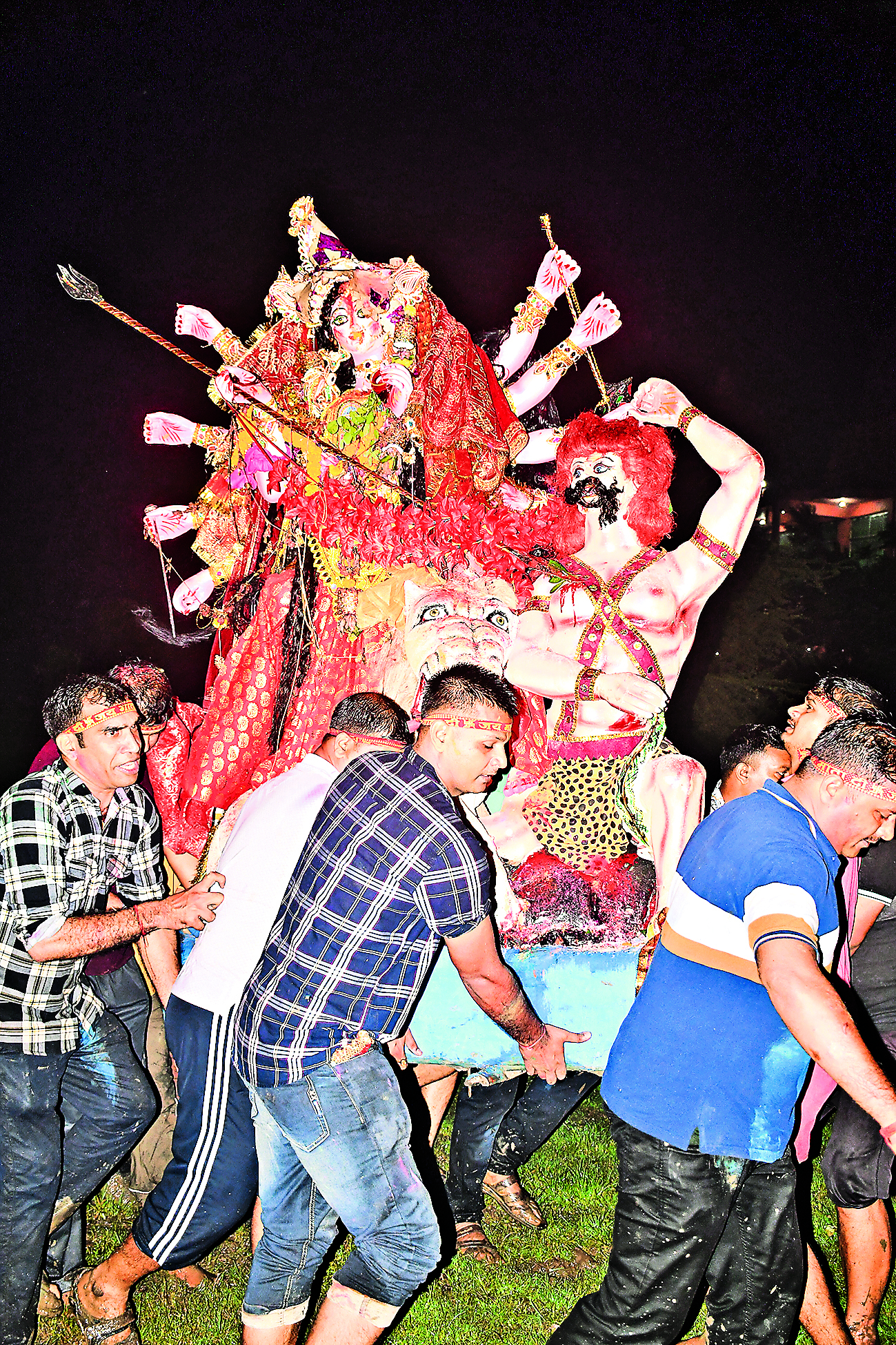 बोकारो, बोकारो जिले में दुर्गा पूजा व दशहरा धूमधाम से मनाया गया. त्योहार शांति व सौहार्द के माहौल में संपन्न हुआ. मंगलवार व बुधवार को लोगों ने विभिन्न पूजा पंडालों में स्थापित मां दुर्गा व अन्य देवी-देवताओं की प्रतिमा का दर्शन किया. विजयादशमी पर गुरुवार को कई पूजा पंडालों में भक्तों ने नम आंखों से मां दुग को विदाई दी. साथ ही अगले वर्ष फिर से आने वादा लिया. माता से सुख-समृद्धि व निरोग रहने की कामना की. गाजे-बाजे के साथ निकली शोभा यात्रा के बाद मां को विदाई दी गयी. कई पूजा पंडालों में शुक्रवार को मां की प्रतिमा का विसर्जन किया गया. इससे पहले बंग भारती, कालीबाड़ी सहित बोकारो-चास के दुर्गा मंडपों में महिलाओं ने सिंदूर खेला की रस्म को भी पूरा किया.