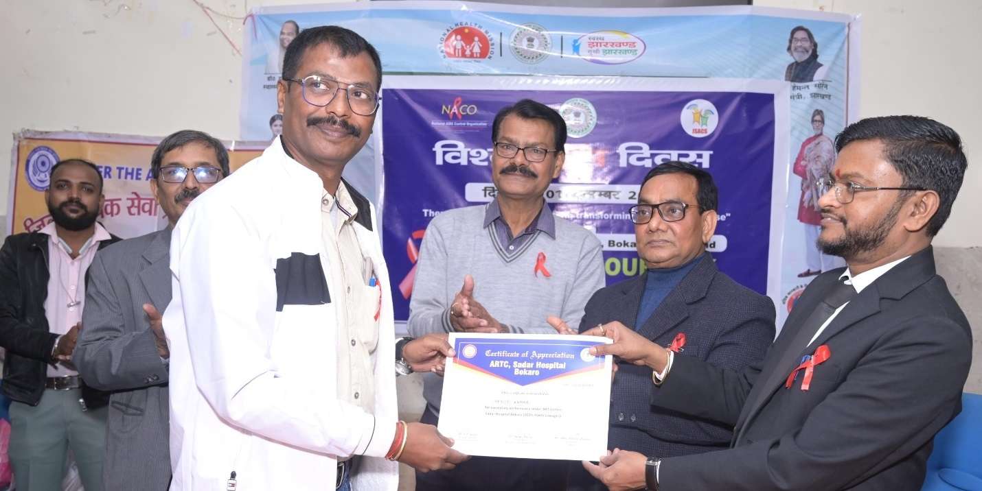 बोकारो, कैंप दो स्थित सदर अस्पताल प्रांगण में एड्स दिवस पर सम्मान समारोह का आयोजन किया गया. उद्घाटन मुख्य अतिथि डालसा सचिव अनुज कुमार, विशिष्ट अतिथि सिविल सर्जन डॉ अभय भूषण प्रसाद, सदर डीएस डॉ एनपी सिंह, डीटीओ डॉ संजय कुमार व डॉ एके झा ने संयुक्त रूप से किया. डालसा सचिव श्री कुमार ने कहा कि बेहतर कार्य करनेवाले हर कर्मचारी सम्मान के हकदार है. सम्मान से ना केवल गौरव बढ़ता है, बल्कि दूसरे को आगे बढ़ने की प्रेरणा भी मिलती है. एचआइवी के प्रति जागरूकता फैलाना सभी की नैतिक जिम्मेवारी है. इस जिम्मेवारी को स्वास्थ्यकर्मी सरल व प्रभावकारी तरीके से निभा रहे हैं. सीएस डॉ प्रसाद ने कहा कि आइसीटीसी में कार्यरत चिकित्सक, स्वास्थ्यकर्मी व कार्य से जुड़े स्वयं सेवी संस्थाओं के प्रतिनिधि अपने दायित्व का ईमानदारी से निर्वहन करें. सभी के बुलंद हौसलों से एचआइवी पर नियंत्रण पाया जा सकता है. हर लोगों को जागरूक करने का बीड़ा हमसभी को उठाना होगा. डॉ एनपी सिंह व डॉ संजय ने बेहतर कार्य करनेवाले स्वास्थ्यकर्मियों का हौसला बुलंद किया. इससे पूर्व अतिथियों ने डॉ नवील अहमद, काउंसलर कुमारी नीरा सिंह, एलटी मनीष कुमार, अभिजीत, रघुवंश, प्रवीण कुमार, शंकर पांडे, एनजीओ प्रयास प्रतिनिधि राजेश्वर राम, वन स्टॉप सेंटर प्रतिनिधि विकास कुमार को सम्मानित किया. मौके पर चिकित्सक व स्वास्थ्यकर्मी मौजूद थे.