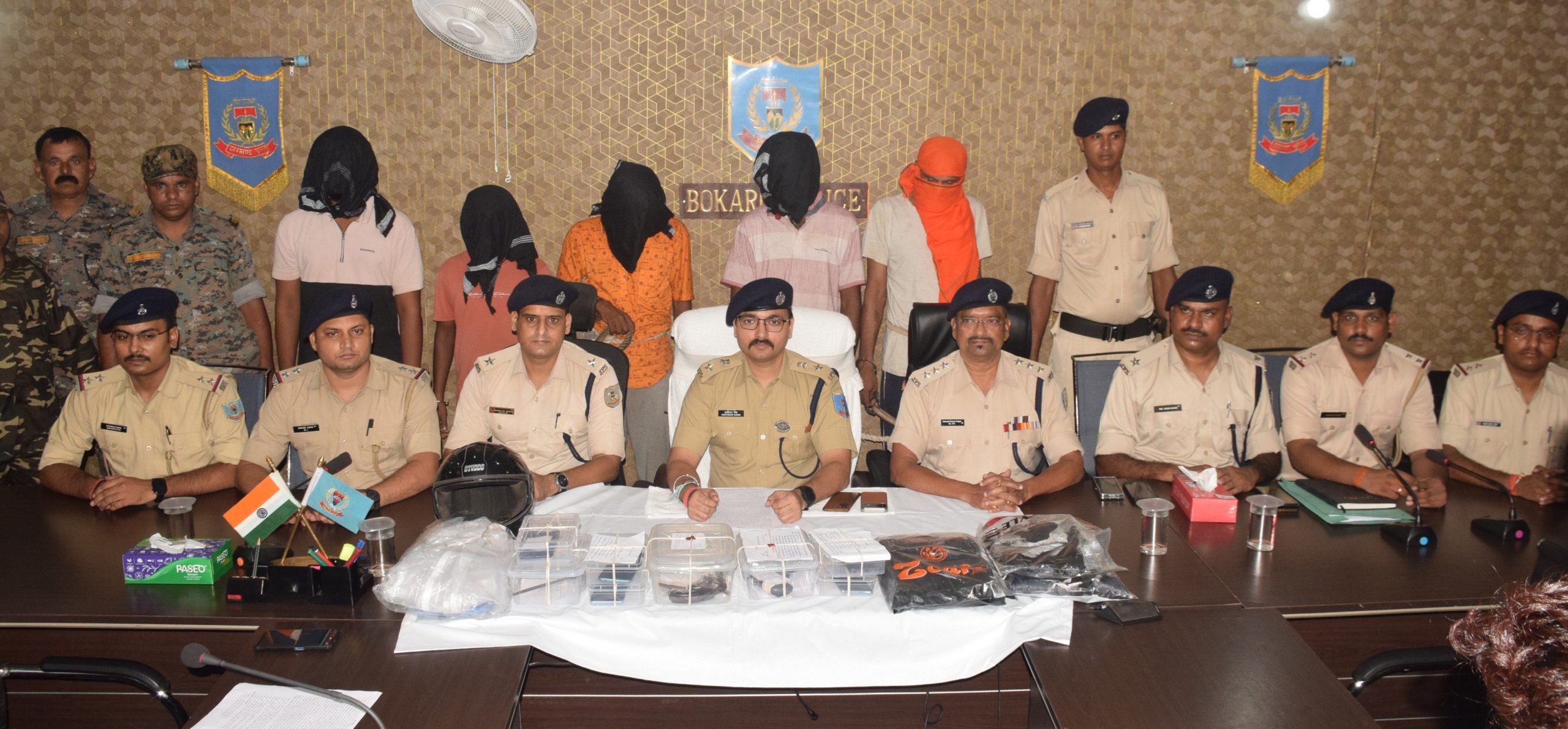 बोकारो, एक अगस्त की देर रात माराफारी थाना क्षेत्र के बांसगोड़ा स्थित गोमिया जनरल स्टोर के पास मंटू दास (42 वर्षीय) की हुई हत्या का खुलासा बोकारो पुलिस ने कर लिया है. मुख्यालय डीएसपी अनिमेष कुमार गुप्ता के नेतृत्व में गठित छापेमारी दल ने कटप्पा गिरोह के सरगना समेत पांच अपराधियों को विभिन्न ठिकानों से गिरफ्तार किया है. कार्रवाई के दौरान तीन अपराधी फरार हो गये. बुधवार को एसपी हरविंदर सिंह ने कैंप दो कार्यालय में पत्रकारों को बताया कि गिरफ्तार अपराधियों में पेटरवार के खेतको का निवासी 32 वर्षीय बीरबल कुमार सिंह उर्फ निखिल सिंह उर्फ कटप्पा, धनबाद का निवासी 21 वर्षीय शेखर कुमार उर्फ शेखर प्रजापति उर्फ साहिल, जरीडीह के बारू का निवासी प्रमोद कुमार धर, गांधीनगर थाना क्षेत्र के जरीडीह बाजार नीचे पट्टी देवीस्थान का निवासी कृष कुमार और पेटरवार थाना क्षेत्र के खेतको टोला बरवाडीह का निवासी 33 वर्षीय सूरजदेव सिंह उर्फ बटलर शामिल हैं.