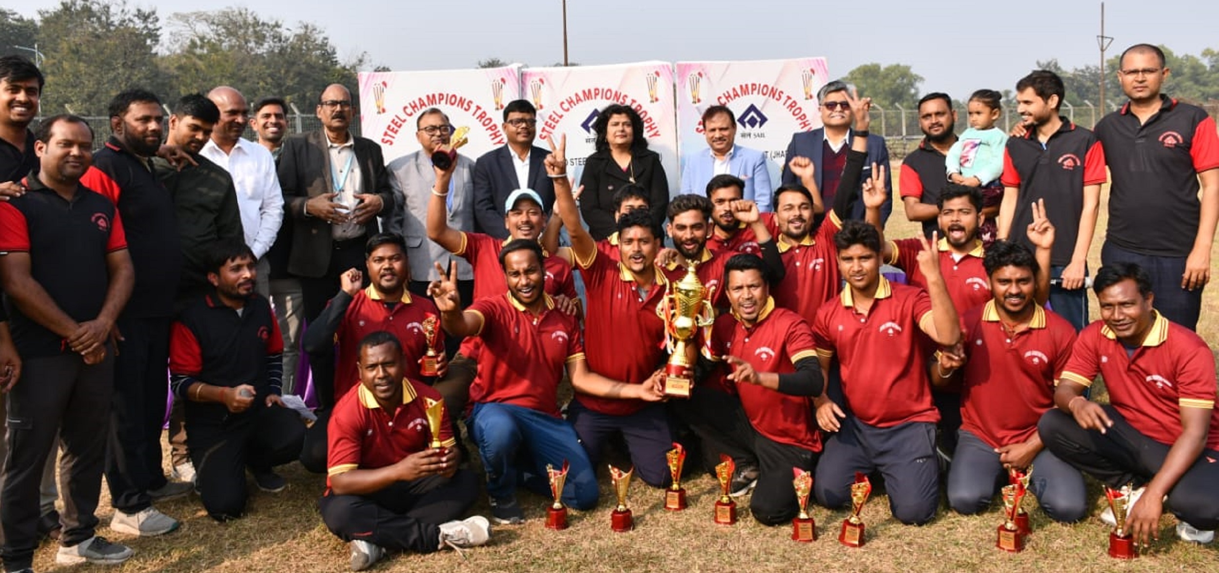 बोकारो, बोकारो स्टील प्लांट के डिप्लोमा इंजीनियर्स की ओर से आयोजित टेनिस बॉल क्रिकेट टूर्नामेंट स्टील चैंपियंस ट्रॉफी का फाइनल मुकाबला मंगलवार को सेक्टर चार क्रिकेट स्टेडियम में एचआरडी व एसएमएस न्यू के बीच में खेला गया. एसएमएस न्यू की टीम ने पहले बल्लेबाजी करते हुए 14 ओवर में पांच विकेट पर 109 रन बनायें, जिसमें मार्शल सोरेन 53 रन व नितेश तिवारी ने 22 रन बनाये. एचआरडी से गौतम ने दो, हरेंद्र व संदीप ने एक-एक विकेट लिए.