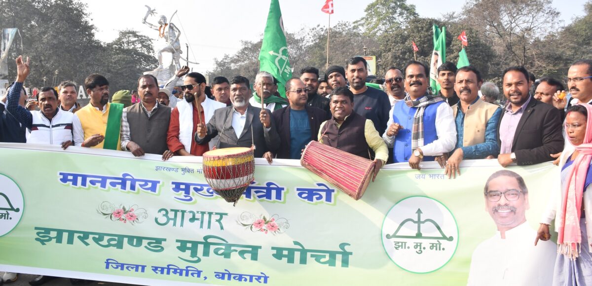Bokaro News : झामुमो ने निकाली आभार यात्रा, नयामोड़ पर कार्यक्रम कर हेमंत सरकार से बोकारो में कानून लागू करने की मांग.