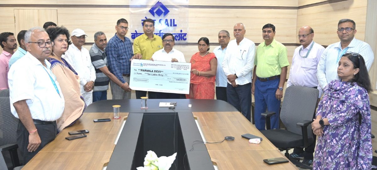 Bokaro News : बीएसएल समूह व्यक्तिगत दुर्घटना बीमा योजना, दिवंगत अशोक पंडित की पत्नी को मिला चेक.