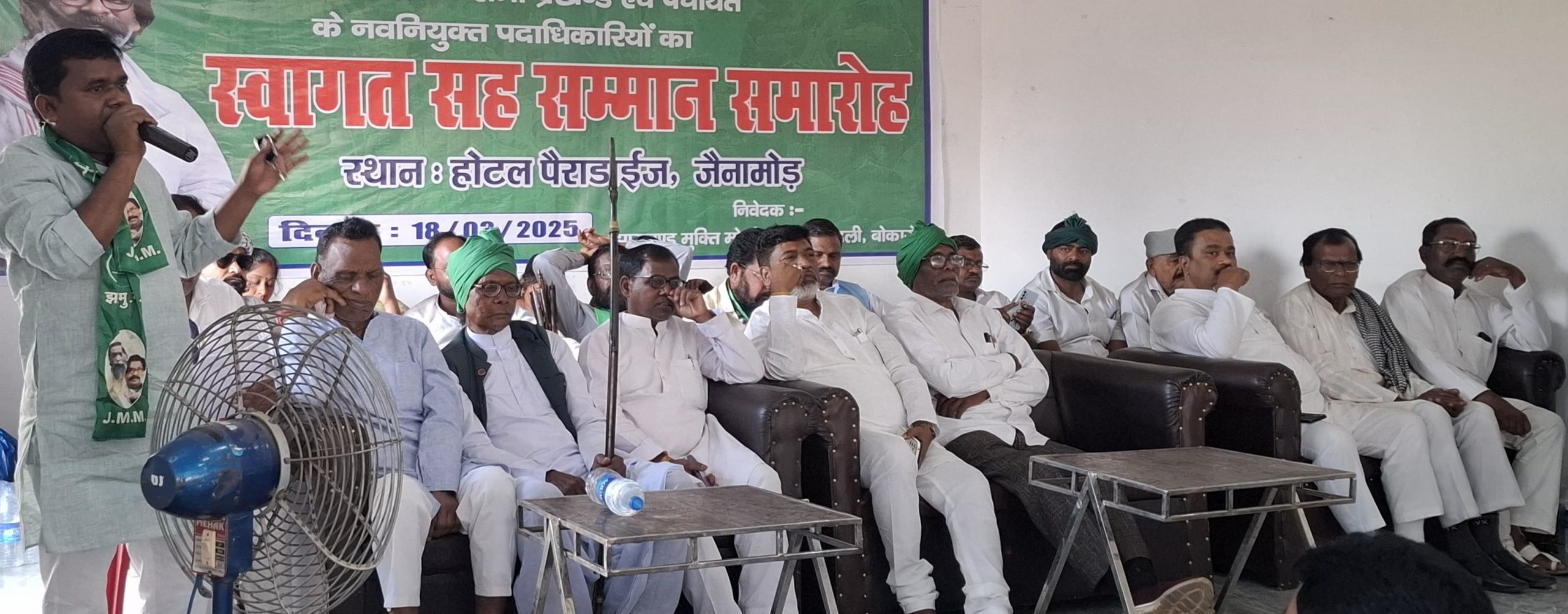 जैनामोड़, जैनामोड़ में मंगलवार को झारखंड मुक्ति मोर्चा की बैठक सह सम्मान समारोह का आयोजन किया गया. अध्यक्षता जिला संयोजक मंडली के प्रमुख डॉ रतनलाल मांझी ने की. डॉ रतनलाल ने कहा कि आज राज्य में भाजपा पूरी तरह धराशायी हो चुका है. केंद्रीय अध्यक्ष दिशोम गुरु शिबू सोरेन के निर्देशानुसार जिले के सभी संयोजक टीम के सदस्यों ने जिला के सभी नौ प्रखंडों में 18 जनवरी से लेकर 28 फरवरी तक सदस्यता अभियान को सफलता पूर्वक पूरा किया है. साथ ही संयोजक मंडली के सदस्यों ने एकजुट होकर पार्टी के निर्देश का पालन करते हुए जिला में संगठन का विस्तार किया है.