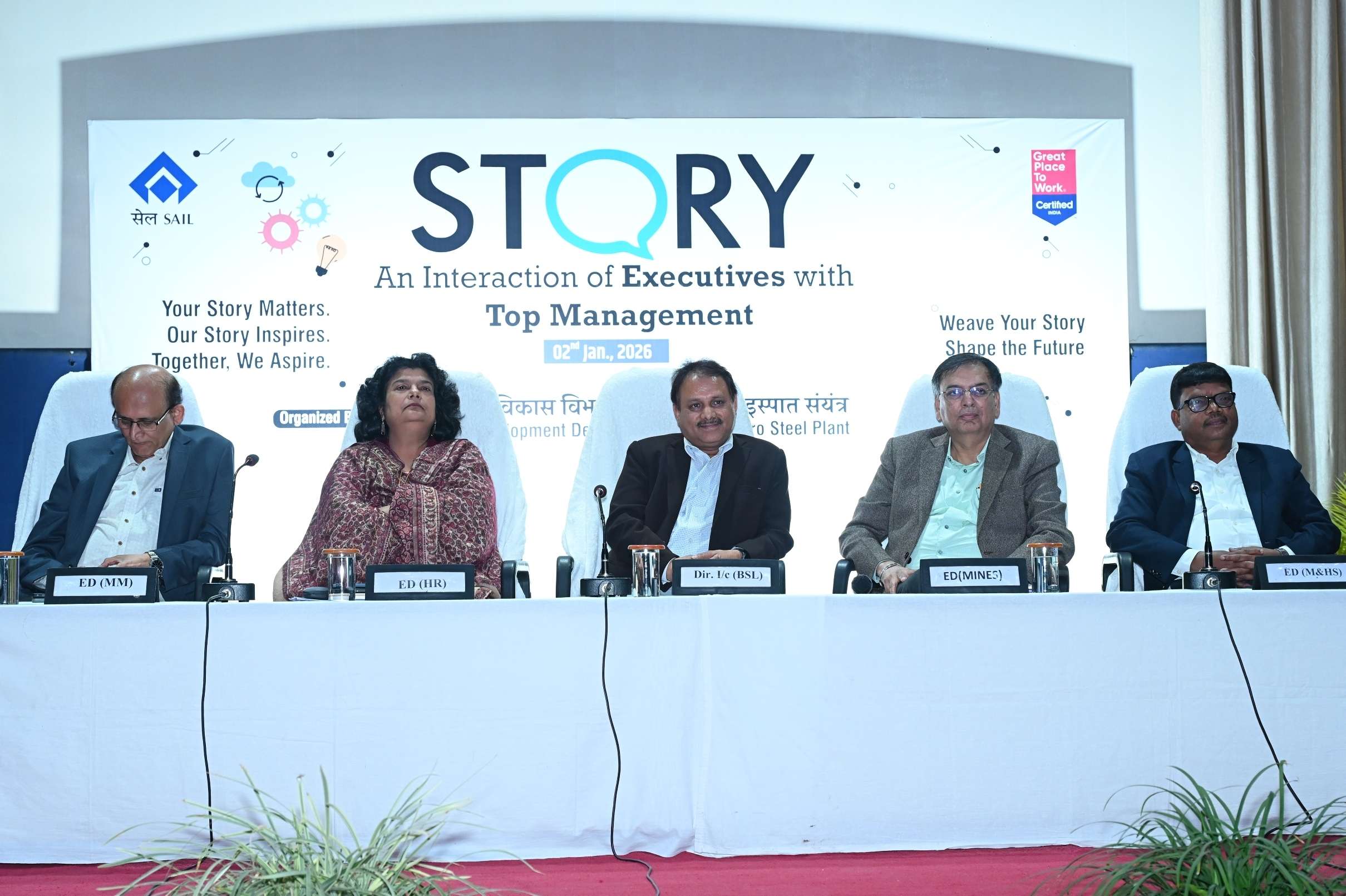 बोकारो, बोकारो स्टील प्लांट (बीएसएल) के मानव संसाधन के ज्ञानार्जन एवं विकास विभाग के मेन ऑडिटोरियम में संयंत्र के शीर्ष प्रबंधन के साथ बीएसएल अधिकारियों का ‘स्टोरी’ नामक संवाद कार्यक्रम का आयोजन शुक्रवार को किया गया. निदेशक प्रभारी प्रिय रंजन ने सभी को सकारात्मक और नवोन्मेषी सोच के साथ पूरी निष्ठा व मनोयोग से संयंत्र की प्रगति के लिए योगदान करने का संदेश दिया. संयंत्र को नयी ऊंचाइयों पर ले जाने का आह्वान किया. निदेशक प्रभारी ने सुरक्षा की शपथ दिलायी. इस दौरान प्रतिभागी अधिकारियों ने अपने-अपने कार्यक्षेत्र से जुड़े उनकी उपलब्धियों, अनुभवों और भावी योजनाओं से शीर्ष प्रबंधन को अवगत कराया. अन्य मंचासीन अधिशासी निदेशकों ने भी अधिकारियों को बीएसएल की प्रगति में योगदान करने का संदेश दिया. मुख्य महाप्रबंधक (ज्ञानार्जन एवं विकास) नीता बा ने स्वागत किया. संचालन वरीय प्रबंधक प्रीति कुमारी ने किया. धन्यवाद ज्ञापन महाप्रबंधक (ज्ञानार्जन एवं विकास) मीनम मिश्रा ने किया. कार्यक्रम में अधिशासी निदेशक (मानव संसाधन) राजश्री बनर्जी, अधिशासी निदेशक (माइंस ) विकास मनवटी, अधिशासी निदेशक (सामग्री प्रबंधन) सीआर मिश्रा, अधिशासी निदेशक (चिकित्सा एवं स्वास्थ्य सेवाएं ) डॉ बीबी करुणामय सहित अन्य वरिष्ठ अधिकारी उपस्थित रहे.