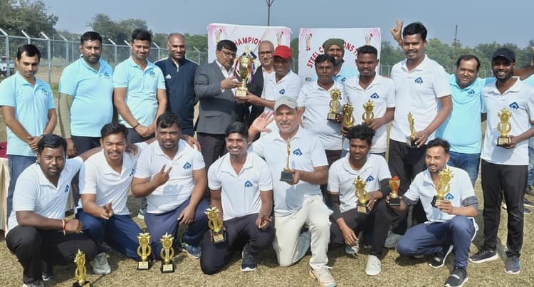 बोकारो, बोकारो स्टील प्लांट (बीएसएल) में कार्यरत बोकारो इस्पात डिप्लोमा यूनियन (बीडू) की ओर से से सेक्टर चार क्रिकेट स्टेडियम में आयोजित स्टील चैंपियंस ट्रॉफी टेनिस बॉल क्रिकेट टूर्नामेंट सोमवार को संपन्न हुआ. फाइनल मैच एसएमएस न्यू व हॉट स्ट्रिप मिल के बीच खेला गया. इसमें एसएमएस न्यू की टीम विजेता बनी. एसएमएस न्यू ने टॉस जीतकर पहले क्षेत्ररक्षण का फैसला लिया. हॉट स्ट्रिप मिल के ओपनर बैट्समैन बजरंग ने 23 गेंदों का सामना करते हुए सर्वाधिक 31 रन बनाये. नीलेश ने 16 गेंदों में 26 रन बनाये. एचएसएम की टीम ने 20 ओवर में कुल 108 रन बनाये. जवाब में एसएमएस न्यू टीम की तरफ से बल्लेबाजी करते हुए नितेश तिवारी ने 17 गेंदों में 20 व राकेश नायक ने छह गेंदों में शानदार 17 रन बनाये. एचएसएम के अजीत ने सर्वाधिक पांच विकेट लिये. बहुत ही रोमांचक स्थिति में मैच आखिरी ओवर में ड्राॅ हुआ. इसके बाद एक-एक ओवर का सुपर ओवर खेला गया. इसमें एसएमएस न्यू की टीम ने जीत दर्ज कर विजेता बनने का गौरव पाया. मुख्य अतिथि बोकारो स्टील प्लांट के अधिशासी निदेशक प्रभारी राजन प्रसाद (मानव संसाधन), अधिशासी निदेशक (संकार्य) सी महापात्रा, विशिष्ट अतिथि डॉक्टर बीबी करुणामय (मुख्य चिकित्सा अधिकारी, बीजीएच), कुंदन कुमार (मुख्य महाप्रबंधक,नगर सेवा भवन), विनय कुमार सिंह (मुख्य महाप्रबंधक, हॉट स्ट्रिप मिल) वीएम बक्शी (महाप्रबंधक, मानव संसाधन) उपस्थित थे. अतिथियों ने विजेता व उपविजेता टीमों को पुरस्कार देकर खिलाड़ियों का मनोबल बढ़ाया. बीडू के महामंत्री संदीप कुमार ने कहा कि टूर्नामेंट में बीएसएल के विभिन्न विभागों से 24 टीम शामिल हुईं. हर दिन चार मैच का आयोजन किया गया. कुल 51 मैच खेले गये. आयोजन कमेटी में नितेश कुमार, निखिल कुमार, प्रेमनाथ, चंदन सिंह, नरेंद्र, चंदन द्विवेदी, विश्वजीत मोहंती, चंदन कुमार, लक्ष्मण, रत्नेश मिश्रा, चंद्रभान झा, रविशंकर आदि डिप्लोमा इंजीनियर्स शामिल थे. बीएसएल कर्मियों के साथ-साथ बोकारोवासियों ने मैच का आनंद उठाया.