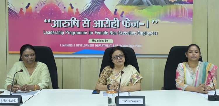 बोकारो, बोकारो स्टील प्लांट (बीएसएल) के मानव संसाधन के ज्ञानार्जन व विकास विभाग की ओर से बुधवार को महिला अधिकारियों व कर्मचारियों के विकास के लिए ‘आरुषि से आरोही’ एक दिवसीय शिक्षण और विकास कार्यक्रम का आयोजन किया गया. नेतृत्व मुख्य महा प्रबंधक (परियोजनाएं) अनिमा कुशवाहा व महाप्रबंधक (एलएंडडी) नीता बा ने किया. जिन्होंने युवा प्रतिभागियों को कार्यस्थल पर उत्कृष्ट प्रदर्शन करने और अपने कौशल सेट को निखारने के महत्व पर प्रेरित किया. महाप्रबंधक (एलएंडडी) नीता बा ने सभी प्रतिभागियों को कार्यस्थल पर व व्यक्तिगत विकास के लिए एक सहकर्मी नेटवर्क स्थापित करने के महत्व पर जोर दिया. बीएसएल की अन्या, डॉ तृप्ति चंद्रा (उप सीएमओ, एमएंडएचएस) व सिंधु कुल्लू (एजीएम, एसपीसी) ने कार्यक्रम का समन्वय किया और प्रतिभागियों को प्रभावी संचार व टीमों में काम करने के महत्व को समझने में मदद की.