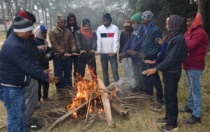 ठंड से बचाव के लिए ग्रामीण और शहरी क्षेत्रों में जगह-जगह अलाव जलाये जा रहे हैं. चौक-चौराहों, बस स्टैंडों, दुकानों व गांव की गलियों में लोग अलाव के इर्द-गिर्द बैठकर खुद को गर्म करते देखे जा रहे हैं. हालात ऐसे हैं कि दिन हो या रात, चारों ओर घना कोहरा छाया हुआ है. सड़कों पर दृश्यता कम है.प्रशासन की ओर से अलाव, गर्म कंबलों का वितरण :