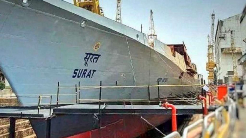 ‘सूरत’ प्रोजेक्ट 15बी कार्यक्रम के तहत बनने वाला चौथा और अंतिम विध्वंसक पोत है, जिसमें रडार को चकमा देने की प्रणाली है. यह पी15ए (कोलकाता श्रेणी) विध्वंसक के एक महत्वपूर्ण बदलाव का परिचायक है. गुजरात की वाणिज्यिक राजधानी और मुंबई के बाद पश्चिमी भारत के दूसरे सबसे बड़े वाणिज्यिक केंद्र सूरत शहर के नाम पर इसका नाम रखा गया है.