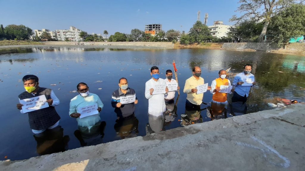 Chhath Puja 2020 : छठ पर हेमंत सरकार की गाइडलाइंस को भाजपा ने बताया तुगलकी फरमान, तालाब में खड़े होकर जताया विरोध