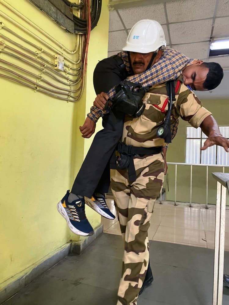 चंद्रपुरा. अग्निशमन सेवा सप्ताह के तहत सीआइएसएफ के फायर विंग द्वारा मंगलवार को सीटीपीएस प्लांट के सर्विस बिल्डिंग में इवैक्यूएशन ड्रिल का आयोजन किया गया. बिल्डिंग में आग लगने की स्थिति में समय रहते लोगों को बाहर निकालने और उन्हें सुरक्षित जगह पर ले जाने को दिखाया गया. मौके पर चंद्रपुरा प्लांट के वरिष्ठ महाप्रबंधक सह परियोजना प्रधान मनोज कुमार ठाकुर, उप कमांडेंट ज्ञान सिंह, उप महाप्रबंधक पीसी साहू, केएम प्रियदर्षी, दिलीप कुमार, अमित सिन्हा, अशोक चौबे सहित डीवीसी के अधिकारी, कर्मी व बल के जवान उपस्थित थे. इधर फायर विंग की ओर से डिनोबिली स्कूल में अग्नि जागरूकता कार्यक्रम भी किया गया. इसमें शिक्षकों, विद्यार्थियों एवं कर्मचारियों आग से बचाव व अग्निशामक यंत्रों के उपयोग के बारे में बताया गया. मौके पर बल के उपनिरीक्षक (अग्नि) पी श्रीधर एवं अन्य जवान उपस्थित थे.