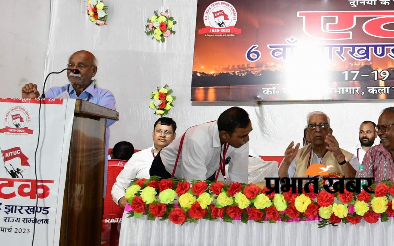 ये बातें राष्ट्रीय अध्यक्ष रमेंद्र कुमार ने बोकारो के सेक्टर दो कला केंद्र में एटक के तीन दिवसीय झारखंड राज्य सम्मेलन दूसरे दिन शनिवार को प्रतिनिधि सत्र को संबोधित करते हुए कही. इसके पूर्व राष्ट्रीय ध्वज व एटक ध्वज उत्तोलन के साथ शहीदों को श्रद्धांजलि दी गयी. सत्र का उद्घाटन राष्ट्रीय अध्यक्ष रमेंद्र कुमार ने किया.