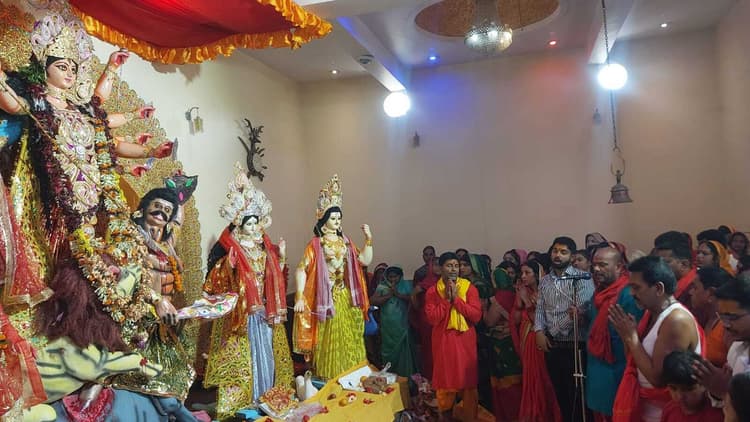 महाअष्टमी की पूजा के लिए मंदिरों और पंडालों में उमड़े श्रद्धालु