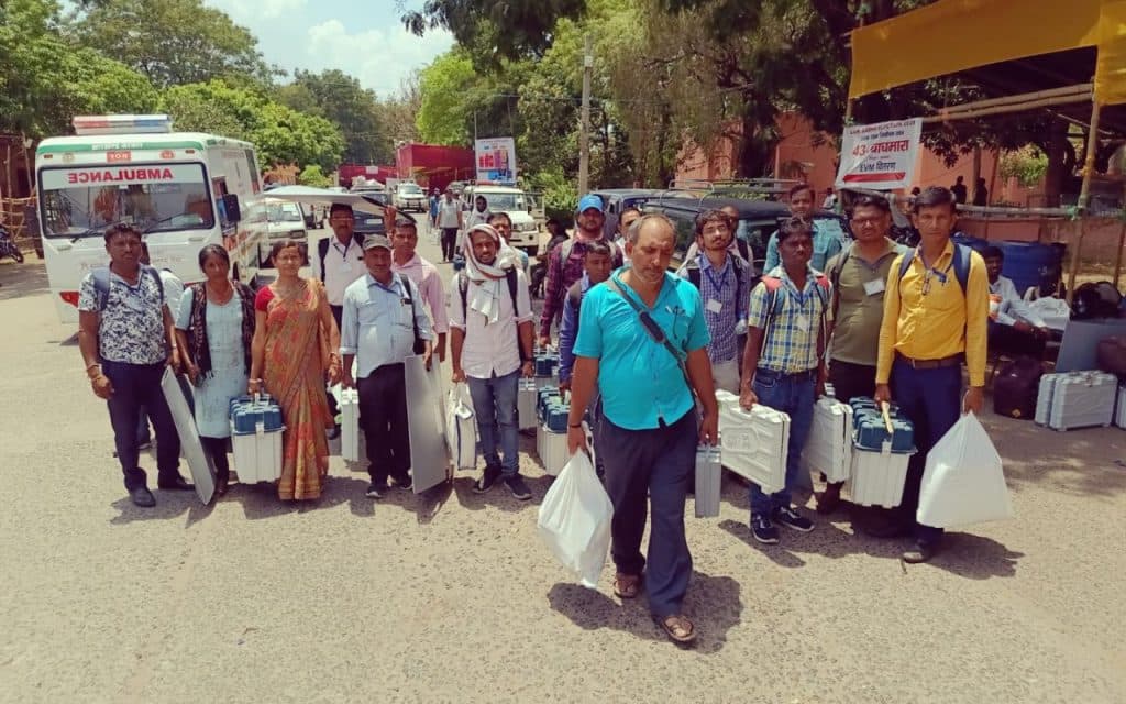 अपने-अपने मतदान केंद्र के लिए रवाना हुए मतदानकर्मी. फोटो : प्रभात खबर