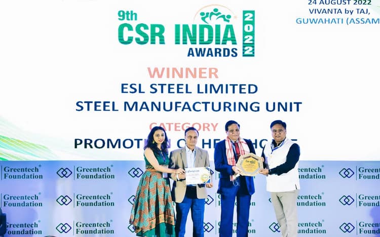 बोकारो के वेदांता समूह की कंपनी ईएसएल स्टील लिमिटेड को नौवां ग्रीनटेक सीएसआर इंडिया आवार्ड 2022 से सम्मानित किया गया. इसका आयोजन ग्रीनटेक फाउंडेशन ने गुवाहाटी में किया था. यह सम्मान स्वास्थ्य देखभाल के प्रचार के लिए दिया गया. ईएसएल के सीएसआर हेड (ईआर व पीआर) आशीष रंजन व ईएसएल के वरीय अधिकारी निधि चावड़ा ने कार्यक्रम में सहभागिता निभायी. ईएसएल के सीईओ एनएल वट्टे ने कहा कि ग्रीनटेक आवार्ड कंपनी के लिए सम्मान की बात है. इससे आगे बेहतर करने के लिए प्रोत्साहन मिलेगा.