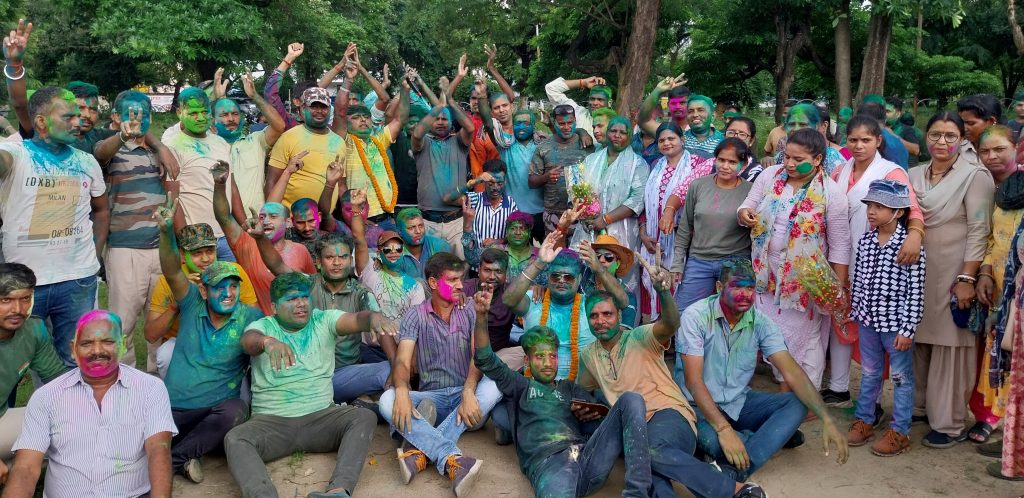 होमगार्ड जवानों ने शहर में रैली निकाली, एक-दूसरे को अबीर गुलाल लगाकर मिठाई खिलायी