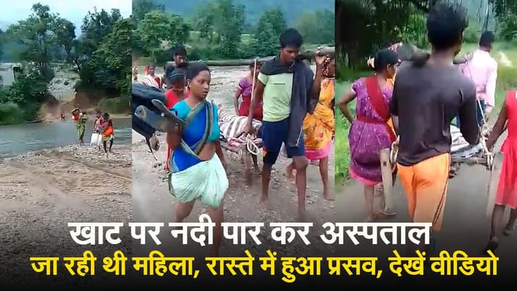 खाट पर नदी पार कर अस्पताल जा रही थी महिला, रास्ते में हुआ प्रसव, देखें VIDEO