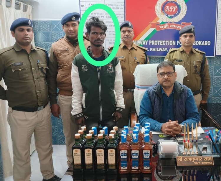 ऑपरेशन सतर्क के तहत बोकारो आरपीएफ की टीम ने अंग्रेजी शराब की 23 बोतलों (कीमत करीब 5750 रुपये) के साथ 26 वर्षीय युवक को गिरफ्तार किया. बोकारो में कार्यरत आरपीएफ एएसआई आर पी सिंह तीन अन्य सहयोगी कर्मियों के साथ पुरुषोत्तम एक्सप्रेस से टाटा से बोकारो रेलवे स्टेशन तक ट्रेन एस्कॉर्ट ड्यूटी में थे. पुरुलिया से बोकारो के बीच परिचालन के दौरान उनकी नजर एक व्यक्ति पर पड़ी. जो कोच संख्या एस 6 के शौचालय के पास एक बैग के साथ संदिग्ध तरीके से खड़ा था. बैग दिखाने को कहने पर वह घबरा गया. उसने पुरी से गया जाने की बात कही. जांच में पोल खुलने पर उसने कहा कि वह अपने रिश्तेदार की शादी के लिए शराब ले जा रहा है. गिरफ्तार युवक रौशन कुमार के बरामद आधार कार्ड में वार्ड नंबर 12, राजेंद्र पथ, तेलबीघा, पोस्ट नया गोदाम अड्डा, कोतवाली थाना, जिला गया, बिहार का पता अंकित है. जब्त शराब की बोतलें और गिरफ्तार युवक को आगे की कार्रवाई के लिए उत्पाद विभाग बोकारो को सौंप दिया गया.