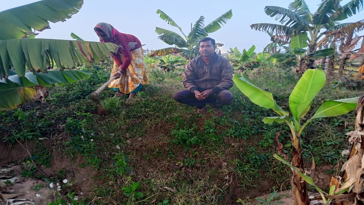 Jharkhand News: झारखंड के बोकारो जिले के गोमिया प्रखंड अंतर्गत पचमो पंचायत स्थित झूमरा पहाड़ के झुमरा गांव में शिक्षक मोहनलाल महतो व उनकी पत्नी कंचना देवी ने लगभग दो एकड़ परती व बंजर भूमि में बगैर किसी सरकारी सहायता के 300-400 केला और करीब 50 आम का पौधा लगाकर हरियाली बिखेर दी है. केला के अलावा आम का पौधा लगाकर झुमरा गांव के ग्रामीणों व किसानों के लिए प्रेरणास्रोत बने हुए हैं.