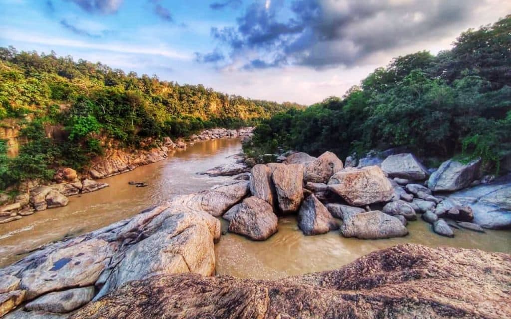 बड़ी-बड़ी चट्टानों के बीच से बहती है कोनार नदी