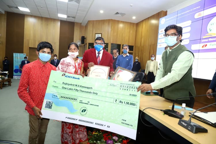 रांची : झारखंड एकेडमिक काउंसिल, सीबीएसइ व आइसीएसइ बोर्ड के 10वीं व 12वीं के टॉपर को मुख्यमंत्री हेमंत सोरेन ने गुरुवार को पुरस्कृत किया. तीनों बोर्ड के स्टेट टॉपर को उन्होंने पुरस्कृत किया. सेकेंड व थर्ड टॉपर को जिला स्तर पर पुरस्कृत किया गया. 12वीं के टॉपर को तीन लाख, सेकेंड टॉपर को दो व थर्ड टॉपर को एक लाख का रुपये का चेक दिया गया. वहीं मैट्रिक के टॉपरों को क्रमश: एक लाख, 75 हजार व 50 हजार रुपये की राशि दी गयी. जमशेदपुर के आठ टॉपरों को भी सम्मान मिला. सीएम ने कहा कि सरकार विदेश जाकर पढ़ाई करने वाले छात्रों को छात्रवृत्ति देगी.