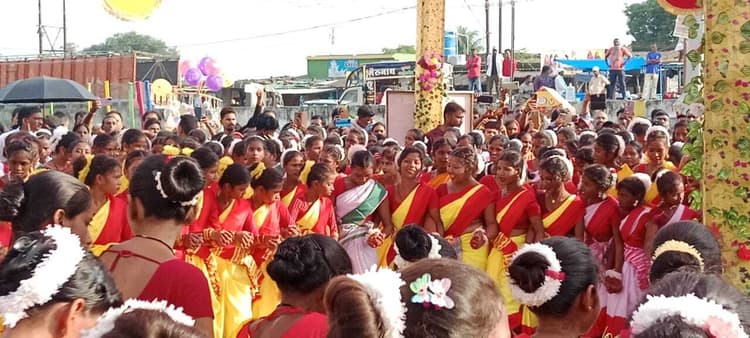 कथारा. अखाड़ा इकाई कथारा-बेरमो के तत्वावधान में बुधवार को कथारा स्थित शिव मंदिर ग्राउंड में करम महोत्सव का आयोजन किया गया. जिसमें बोडिया बस्ती, कथारा बस्ती, बांध बस्ती, महली बांध, रेलवे कॉलोनी, गोविंदपुर बस्ती, गोनियाटो, पिपराडीह, कंजकीरो, हरलाड़ीह, जरीडीह बस्ती, कोरिया बेड़ा सहित 40 गांवों के करमती दलों ने हिस्सा लिया. मंच संचालन व धन्यवाद ज्ञापन राजाराम महतो ने किया. कार्यक्रम की शुरुआत करमतियों द्वारा जावा काे दंडवत प्रणाम व करम गीत गाकर की गयी. करमती दलों को नृत्य के लिए दस-दस मिनट का समय दिया गया. अंत में सभी दलों की करमतियों को आयोजन समिति द्वारा पुरस्कृत किया गया. मौके पर मुख्य रूप से जेएलकेएम के केंद्रीय सदस्य वीरेंद्र कुमार, बोडिया उत्तरी मुखिया कामेश्वर महतो, नारायणपुर के पूर्व मुखिया अनंतलाल महतो, गोनियाटो के गणेश कुमार महतो, गोविंदपुर के प्रो दशरथ महतो, बोडिया बस्ती के दशरथ महतो, परमेश्वर महतो, पंसस सोनामती देवी, अनिता देवी, खीरु महतो, योद्धा महतो, अर्जुन महतो, वैदकारो मुखिया सीमा देवी, कमलेश महतो, मोहन मरांडी, आयोजन समिति के मनोज महतो, सचिन तुरी, प्रसादी महतो, राजीव महतो, सुनील महतो, दिलीप महतो, लक्ष्मण महतो, सोनू महतो, मुन्ना महतो, नवल तुरी, खिरोधर यादव, कृष्णा महतो, सुंदरलाल महतो, मिठू महतो, ईश्वर महतो, श्यामसुंदर महतो, भोला महतो, खिरोधर महतो सहित काफी संख्या में ग्रामीण उपस्थित थे.