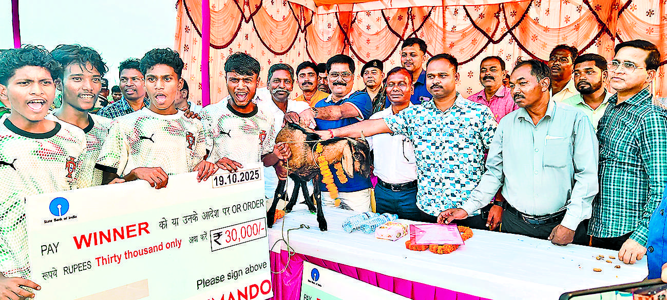 महुआटांड़, कुशमांडो (ललपनिया) स्थित फुटबॉल मैदान में रविवार को सावंता स्पोर्टिंग क्लब कुशमांडो के बैनर तले आयोजित पांच दिवसीय फुटबॉल टूर्नामेंट का फाइनल मैच करमाटांड़ ब्वॉयज और ऐश पौंड ललपनिया के बीच खेला गया. इसमें करमाटांड़ की टीम शुरू से ही ललपनिया पर हावी रही और 4-1 से विजयी रही. इससे पहले मुख्य अतिथि मंत्री योगेंद्र प्रसाद ने फाइनल मैच का उद्घाटन किया. समापन समारोह में उन्होंने विजेता और उप विजेता टीम को क्रमशः तीस हजार और बीस हजार रुपये नगद और खस्सी देकर पुरस्कृत किया. उन्होंने कहा कि ऐसे आयोजन से प्रतिभाओं को आगे आने का अवसर मिलता है. मौके पर झामुमो प्रखंड अध्यक्ष लुदू मांझी, पूर्व मुखिया बबुली सोरेन, क्लब के संरक्षक सह झामुमो नेता मितन सोरेन, विनोद सोरेन, मिथिलेश किस्कू, तुलसी महतो, मदन महतो, सचिन महतो, हेमू यादव सहित कई लोग थे.