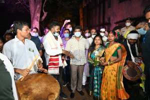 इससे पहले करमा पर्व पर आयोजन समिति के द्वारा मुख्यमंत्री का परंपरागत तरीके से स्वागत किया गया. मुख्यमंत्री ने करम राजा की पूजा की. इस दौरान मुख्यमंत्री ने मांदर पर थाप दी तो छात्र-छात्राओं के कदम थिरक उठे. समारोह में मुख्यमंत्री को आयोजकों की ओर से औषधीय पौधे भेंट किए गए.