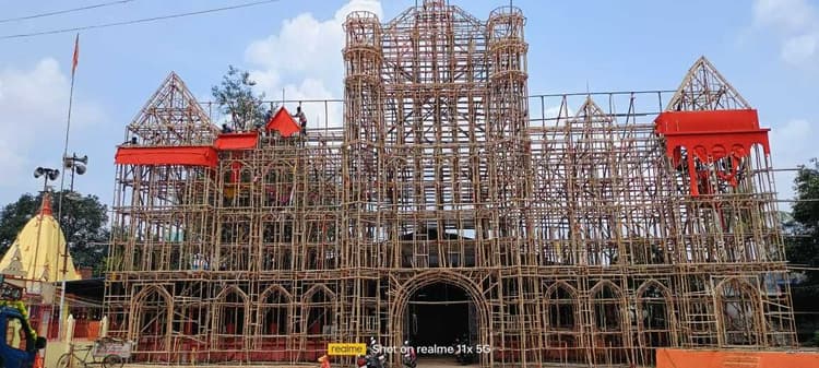 Bokaro News : कथारा मेन रोड स्थित दुर्गा मंदिर में लंदन का होल बोर्न हवेली के प्रारूप का भव्य पूजा पंडाल बनाया जा रहा है. लगभग छह लाख रुपये की लागत से सरिता टेंट हाउस जरीडीह बाजार के शिशिर कुमार मंडल की देखरेख में 16 सदस्यीय टीम एक माह से पंडाल के निर्माण कार्य में लगी है. पंडाल नवरात्र के पांचवी तिथि तक पूरा हो जायेगा. प्रतिमाओं का निर्माण पश्चिम बंगाल के कन्हाई पाल व उनकी टीम कर रही है. इसमें लगभग 80 हजार रुपये खर्च होंगे. वहीं लाइटिंग पर लगभग 1 लाख 10 हजार रुपये खर्च होंगे. इस वर्ष पूजा को सफल बनाने में कमेटी अध्यक्ष दशरथ महतो कार्यकारी अध्यक्ष राजेश जायसवाल, सचिव रामेश्वर कुमार मंडल, आशीष चक्रवर्ती, अवधेश पांडेय, राजेंद्र तिवारी, रवींद्र यादव, रमेश यादव, हरिश्चंद्र सिंह, दिनेश कुमार, संजय मिश्रा, किट्टू महतो, बरियार महतो, उपेंद्र सिंह, ललन सिन्हा, सुकुमार डे, जेके साहा, अशोक झा, पिंटू शर्मा, संजय मिश्रा, विजय यादव, एसएन नियोगी, महेश महतो, राहुल शर्मा, जयप्रकाश पांडेय, राजेंद्र राम, विकास सिंह, अमित राय, रंजीत सिंह, रंजीत सिन्हा, बोडिया उत्तरी मुखिया कामेश्वर महतो, दक्षिणी पूर्व मुखिया घनश्याम प्रसाद, बीरेंद्र मंडल, खिरोधर यादव, संतोष तुरी, पीडी प्रसाद आदि लगे हुए हैं. यहां लगभग 65 वर्षों से दुर्गा पूजा हो रही है. 1960 में स्टाफ कॉलोनी के एक क्वार्टर पूजा की शुरुआत हुई. बाद में 1965 से मंदिर में भव्य तरीके से प्रतिमाएं की पूजा होने लगी.