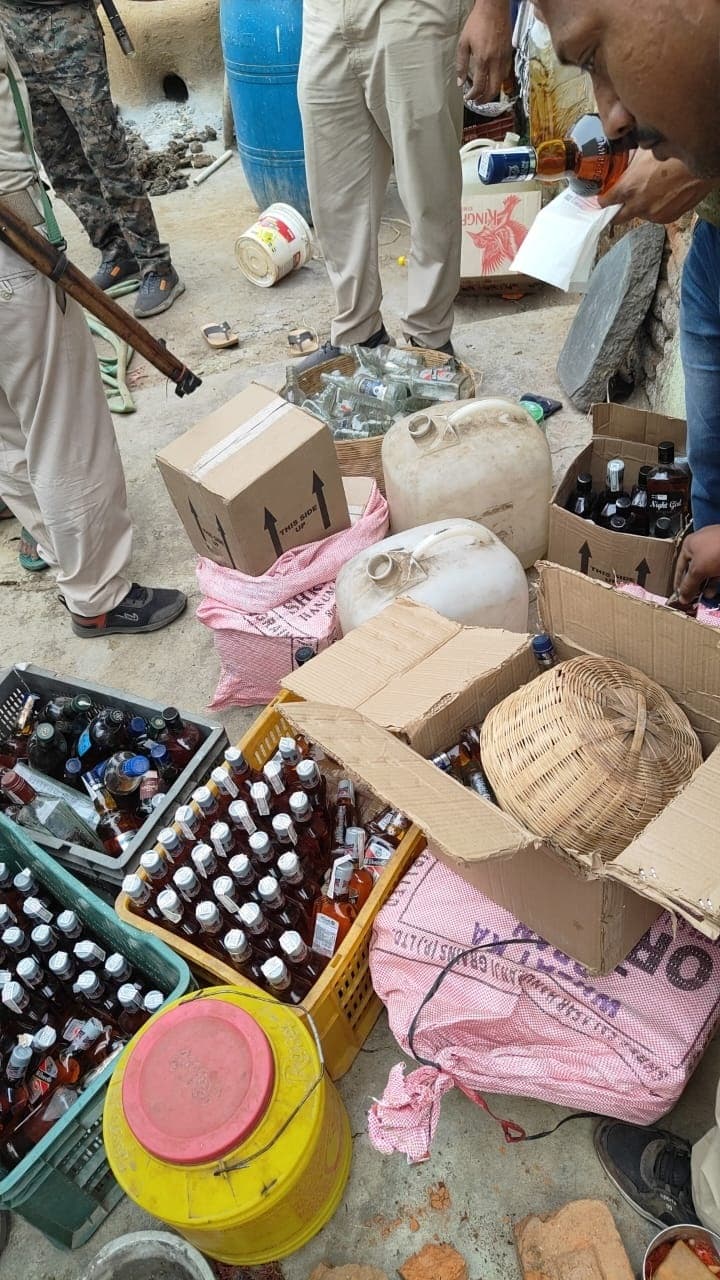 बड़की चिदरी के तीन घरों से भारी मात्रा में अवैध विदेशी शराब जब्त