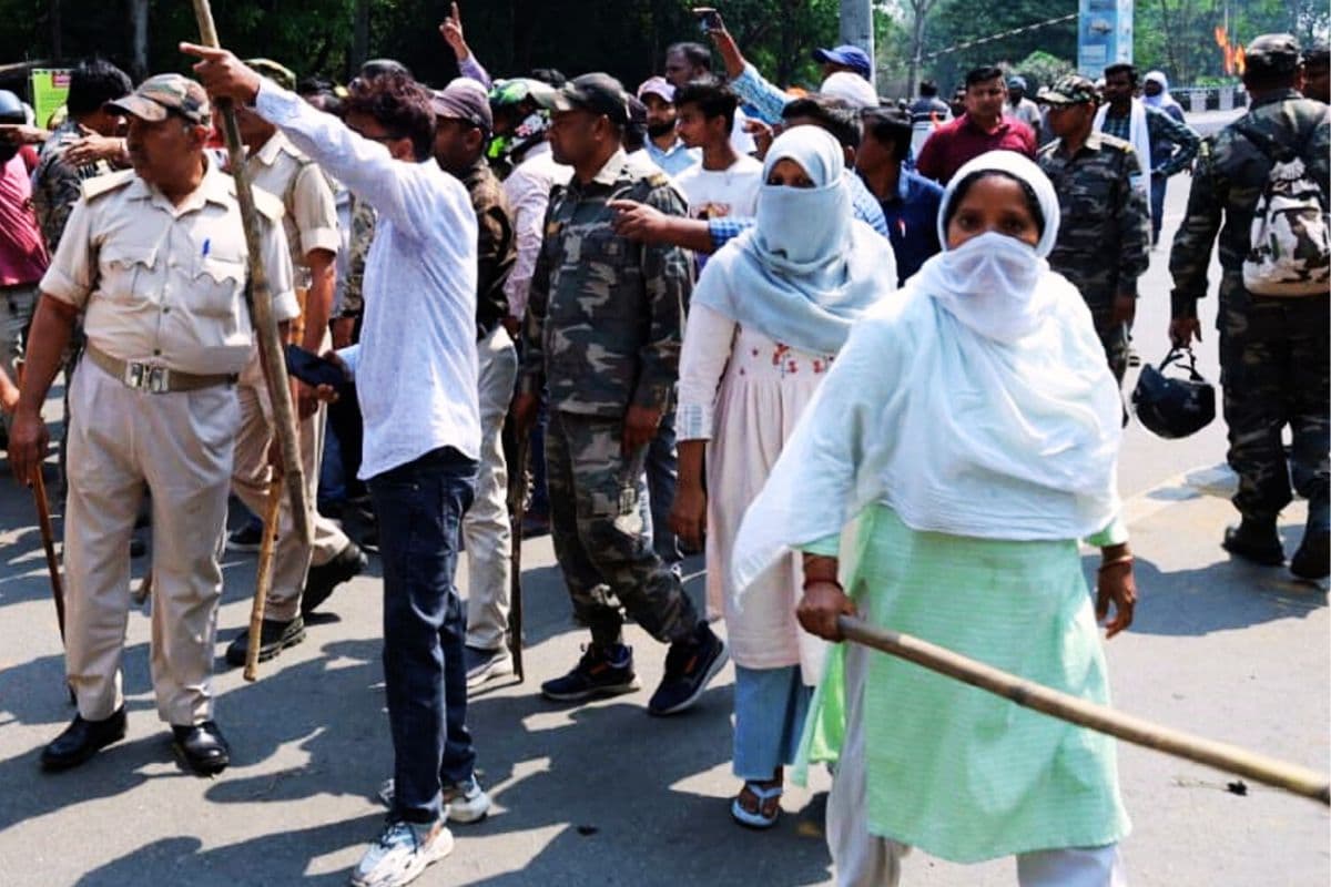 - लाठीचार्ज के बाद पुलिस वाहन के शीशे तोड़े
