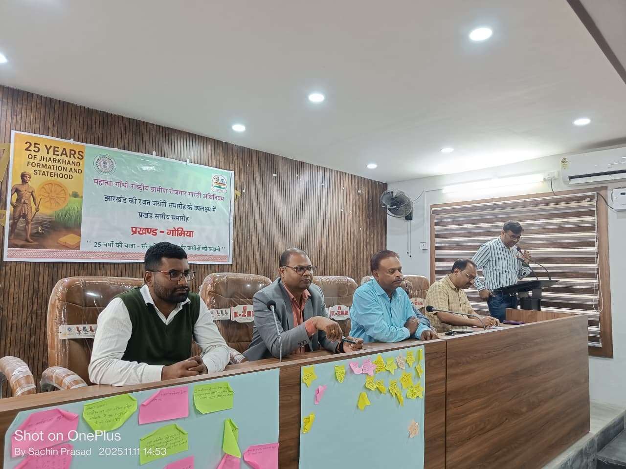 ललपनिया, झारखंड के रजत जयंती वर्ष के अवसर पर गोमिया प्रखंड कार्यालय के सभागार में ग्रामीण विकास विभाग के तत्वावधान में विशेष कार्यक्रम का आयोजन किया गया. मौके पर मनरेगा, ग्रामीण आवास, जलछाजन एवं जेएसएलपीएस से संबंधित योजनाओं की उपलब्धियों और कार्ययोजनाओं पर चर्चा की गयी. बेहतर कार्य करने वाले मनरेगा कर्मियों को प्रशस्ति पत्र देकर सम्मानित किया गया.