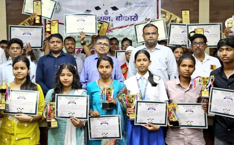 Bokaro News : समाहरणालय के सभागार में बुधवार को आयोजित समारोह में उपायुक्त अजय नाथ झा ने वार्षिक माध्यमिक एवं इंटरमीडिएट की परीक्षा में उत्कृष्ट प्रदर्शन करने वाले 88 छात्र – छात्राओं एवं शत- प्रतिशत परीक्षा परिणाम लाने वाले 54 विद्यालयों के प्रधानाध्यापकों को शील्ड एवं प्रशस्ति पत्र देकर सम्मानित किया. सम्मान समारोह की अध्यक्षता करते हुए उपायुक्त अजय नाथ झा ने कहा : मेहनत व लगन से विद्यार्थियों व शिक्षकों ने जिले के प्रदर्शन में जो निखार लाया है, यह जारी रहना चाहिए. यह तो बस शुरुआत है, यात्रा रुके नहीं. जिले व राज्य का नाम रोशन करें. माध्यमिक, इंटरमीडिएट, स्नातक व स्नातकोत्तर, ये सभी पड़ाव हैं, इन पड़ावों को पार करके ही व्यक्तित्व का निर्माण होता है.