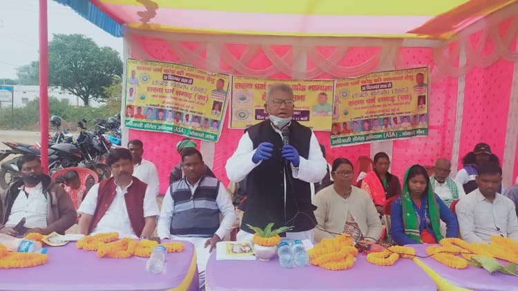 Sarna Adivasi dharam Code, Adivasi Sengel Abhiyan, rail-road traffic jam, कसमार (दीपक सवाल) : सरना आदिवासी धर्म कोड (Sarna Adivasi dharam Code ) की मांग को लेकर आदिवासी सेंगेल अभियान (Adivasi Sengel Abhiyan ) की जनसभा सोमवार को कसमार प्रखंड के खैराचातर में आयोजित हुई. अभियान के राष्ट्रीय अध्यक्ष सालखन मुर्मू (Salkhan Murmu ) मुख्य अतिथि थे. अध्यक्षता प्रखंड अध्यक्ष विशेश्वर मुर्मू ने की. सभा में एलान हुआ कि केंद्र सरकार ने सरना धर्म कॉलम कोड की घोषणा नहीं की तो 31 जनवरी को पांच राज्यों (झारखंड, बिहार, बंगाल, ओड़िसा एवं असम) में रेल रोड चक्का जाम (rail-road traffic jam ) कर दिया जाएगा.