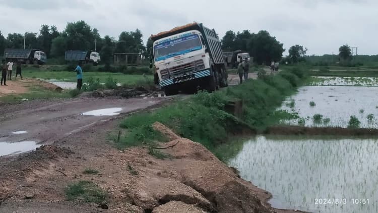 हाइवा के परिचालन से सड़क हुई जर्जर