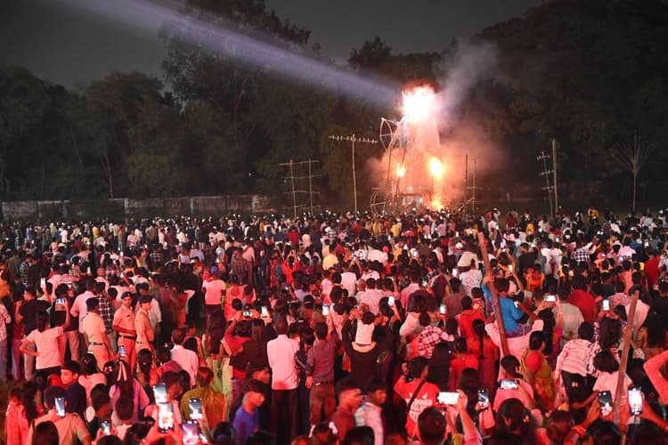 BOKARO NEWS : श्री श्री सार्वजनिक दुर्गापूजा समिति सेरसा स्टेडियम बालीडीह की ओर से सेरसा स्टेडियम में रावण का पुतला दहन किया गया. इस दौरान स्टेडियम में रेलवे कॉलोनी के साथ-साथ बालीडीह, कुर्मीडीह, माराफारी, जैनामोड़ सहित अन्य स्थानों से लोग रावण दहन देखने पहुंचे. पूजा समितियों ने कहा कि दशहरा बुराई पर अच्छाई की जीत का प्रतीक है. पेटरवार के रावण दहन में जुटी हजारों लोगों की भीड़ सार्वजनिक दुर्गा पूजा समिति तेनु चौक पेटरवार की ओर से विजयादशमी के अवसर पर शनिवार की संध्या में पेटरवार उच्च विद्यालय मैदान में रावण दहन कार्यक्रम का आयोजन किया गया. इसमें हजारों दर्शकों की भीड़ उमड़ी. बंगाल के मिस्त्री ने 45 फीट ऊंचा रावण का पुतला बनाया गया था. रावण के पुतला की पूजा -अर्चना साड़म के नरेश पांडेय एवं पेटरवार के दीपू बनर्जी ने की. रावण दहन कार्यक्रम के मुख्य अतिथि गोमिया के विधायक डॉ लंबोदर महतो एवं विशिष्ट अतिथि संयुक्त बिहार के पूर्व मंत्री छत्रु राम महतो, जिला परिषद सदस्य प्रह्लाद महतो व विधायक की पत्नी कौशल्या देवी ने विजयादशमी की शुभकामना देते हुए कहा कि यह त्योहार अधर्म पर धर्म की विजय का प्रतीक है. हजारों दर्शकों की उपस्थिति में मुख्य अतिथि व विशिष्ट अतिथियों ने तीरनुमा पटाखे चला कर रावण के पुतले का दहन किया. इसके साथ ही जय श्रीराम के नारे से पूरा क्षेत्र गुंजायमान हो उठा. जम कर आतिशबाजी की गयी. मंच संचालन पूर्व प्रमुख मनोज गुप्ता एवं संरक्षक अजय सिंह ने किया.