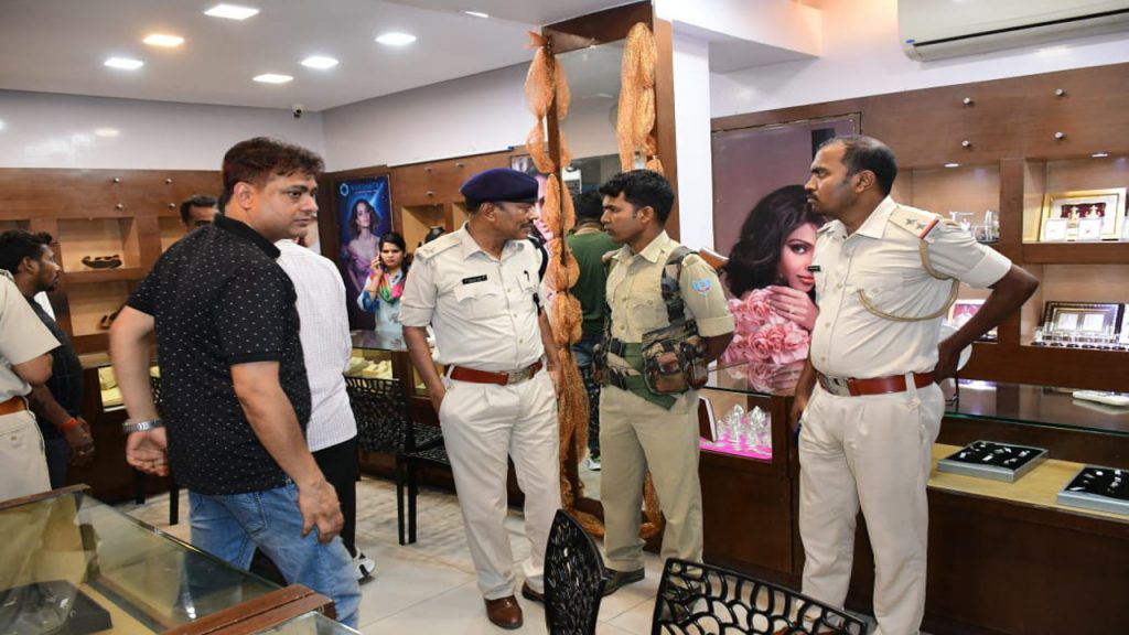 बोकारो शहर के हृदय स्थली सेक्टर- चार के सिटी सेंटर स्थित हर्षवर्धन प्लाजा में संचालित गणपति ज्वेलर्स में रविवार को अपराधियों ने दिनदहाड़े लूटपाट की. ज्वेलर कर्मी कोमल सिंह ने बताया कि लंच आवर में अपराधी दुकान में घुसे. उस समय सिर्फ दो ही स्टाफ अंदर थे. बताया गया कि दो बाइक पर सवार होकर चार अपराधी दुकान में पहुंचे थे. इस दौरान तीन अपराधी दुकान के अंदर दाखिल हुआ, जबकि एक बाहर खड़ा होकर गतिविधियों पर नजर रखा था.